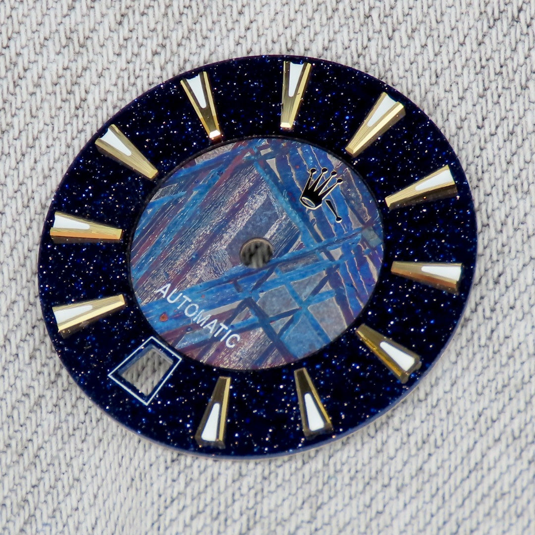 Dial maker - Burned/ Blue Purple Meteorite combined with blue gold stone dial